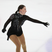 Eeva O’Brien (Co. Wicklow) began her short with a double Axel that was called short on rotation by the technical panel. She included a double Lutz-double toe loop as a jump combination which was followed by a Level 3 flying camel spin. She executed a double flip and finished with a Level 1 change foot combination spin, a Level 3 step sequence and a Level 3 layback spin. Her score of 33.77 points put her in second place at the midway point of the competition.